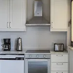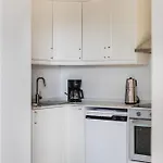 Оснащённая всем необходимым кухня хорошо оборудована кофеваркой, холодильником и стеклянной посудой.